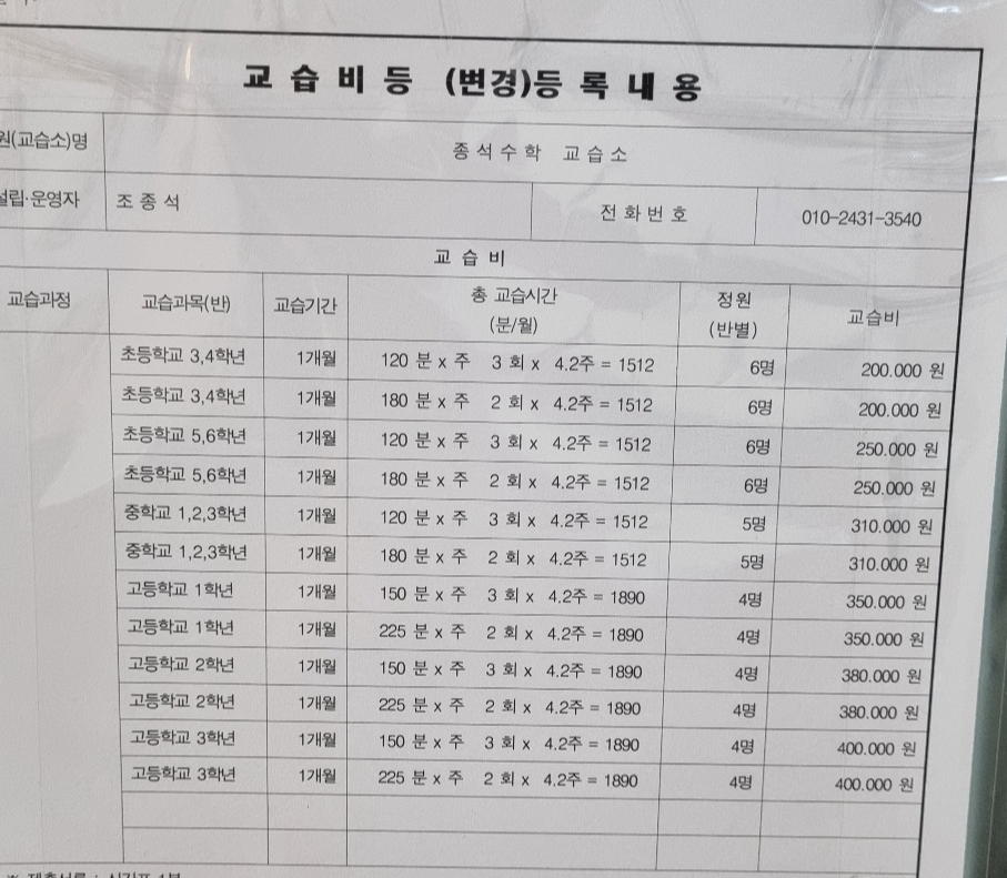 초등학생부터 고등학생까지 가르칠 수 있는 학원이라 한다.