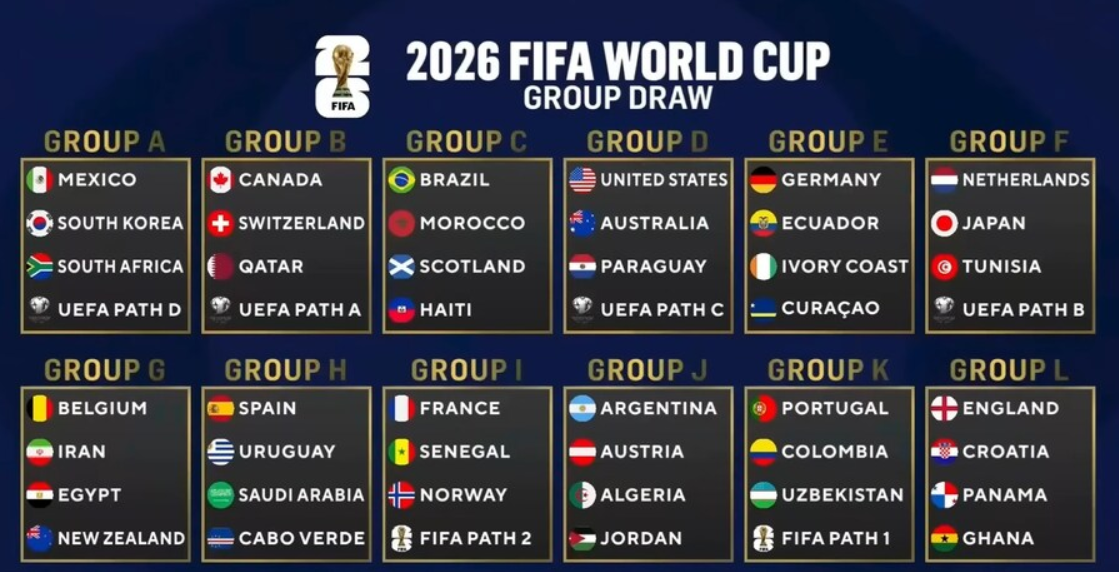 (2026 북중미월드컵 조추첨 결과, 진출국 32개국 위 사진 참고.)
