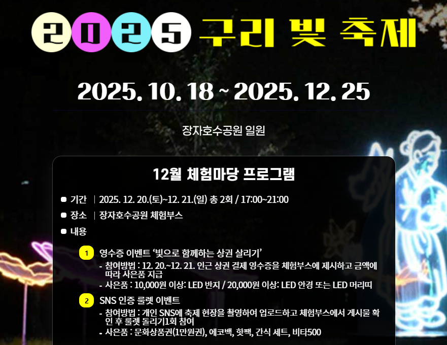 2025 연말 겨울축제로 가볼만한곳 구리 빛축제는 장자호수공원 일원에서 개최됩니다.