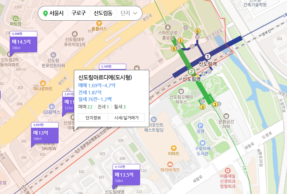 지하철 2호선, 1호선, 신안산선(개통예정) 트리플 환승역 신도림역 바로 앞에 위치한 신도림 아르디에 소형아파트 매도(판매)하고자 합니다.
