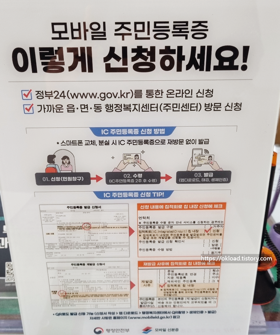 주민센터에 인감증명을 발급받기 위해서 방문하였다가 알게 된 '모바일 주민등록증' 신청 발급 방법이다.