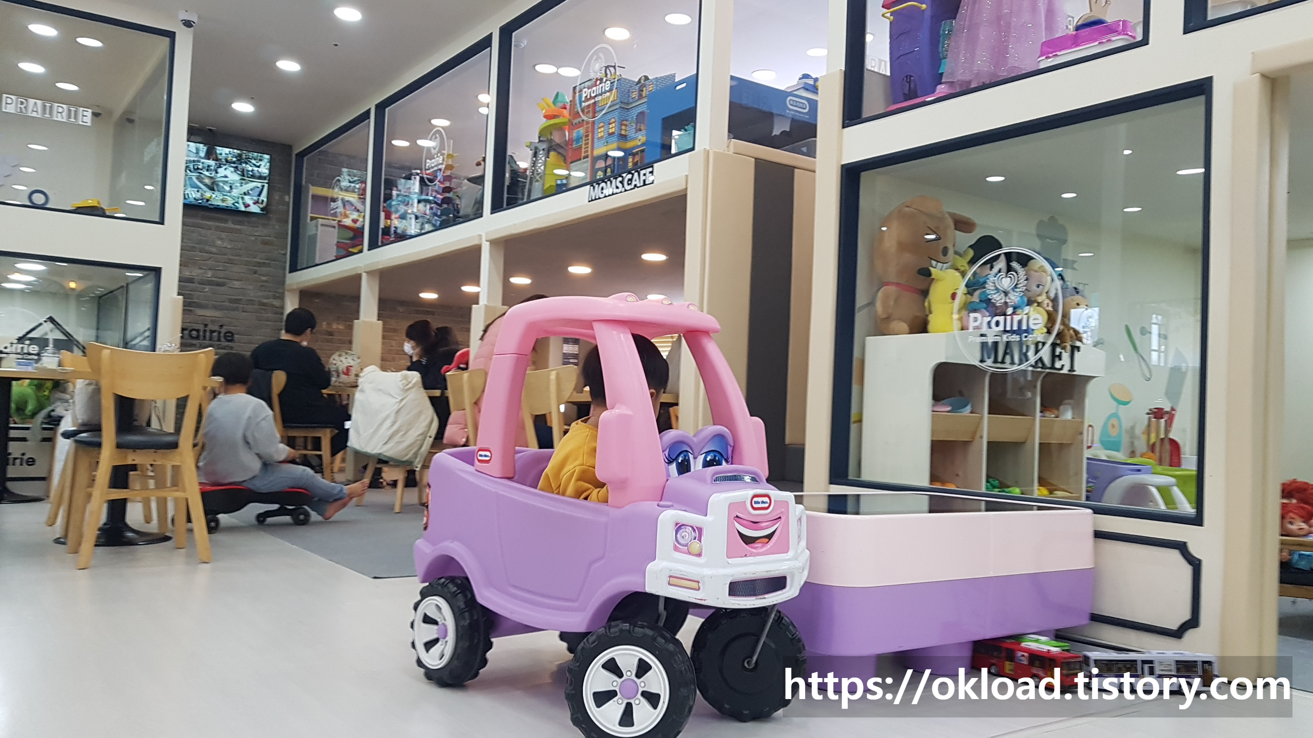 우리 아이는 프레리카페에 입장과 동시에 환호하며 자동차와 같은 탈것들로 달려간다. 그렇게 제일 먼저 자동차를 타면서 워밍업 적응시간을 가진 후 본격적인 프레리 즐기기에 돌입한다.