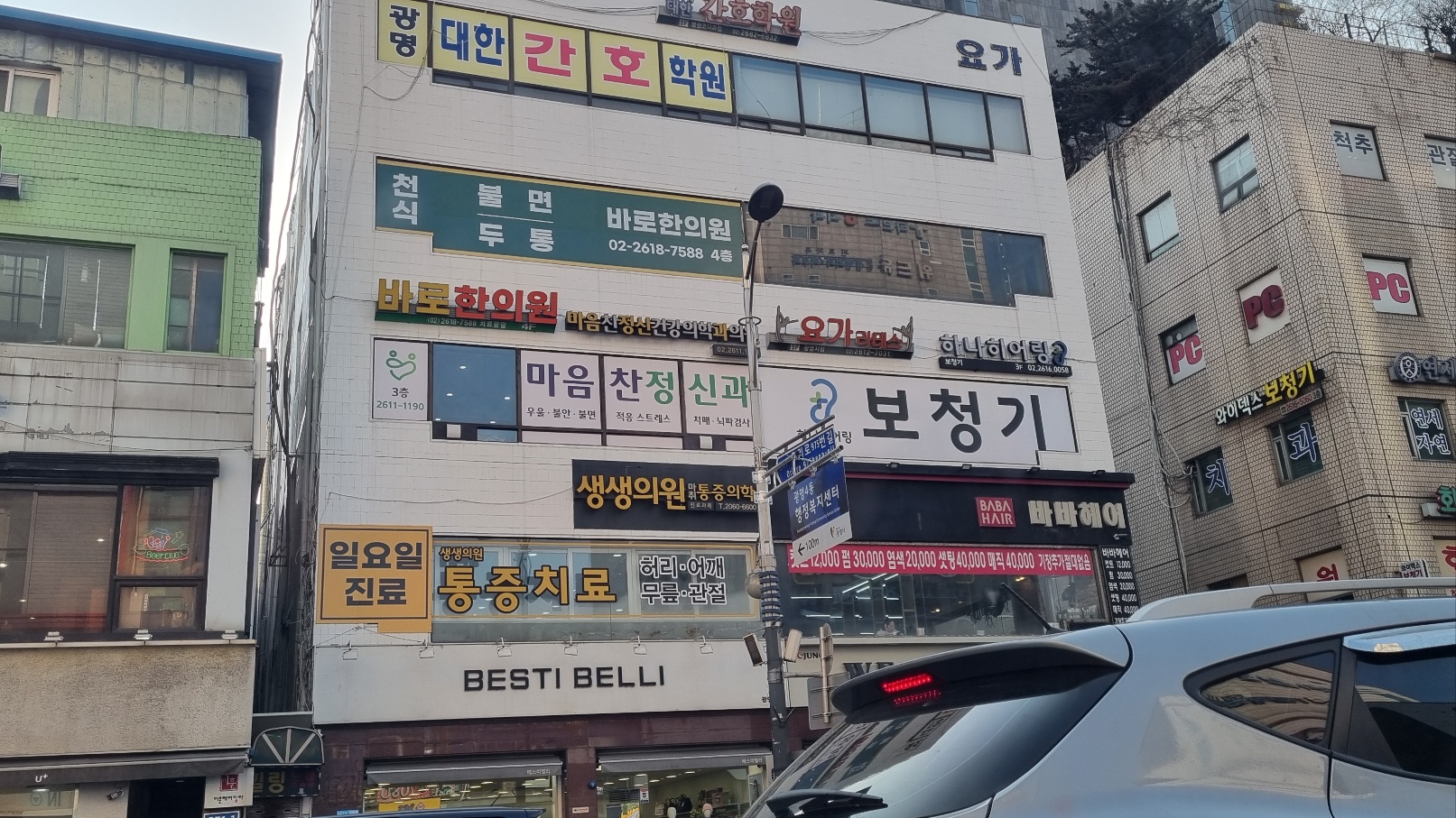 바로한의원, 생생의원 통증치료, 와이덱스보청기, 마음찬정신과는 모두 광명사거리 가까이에 있다.