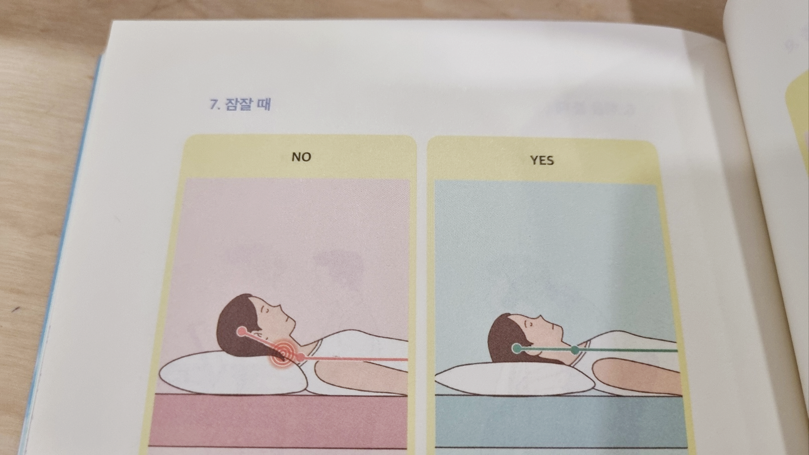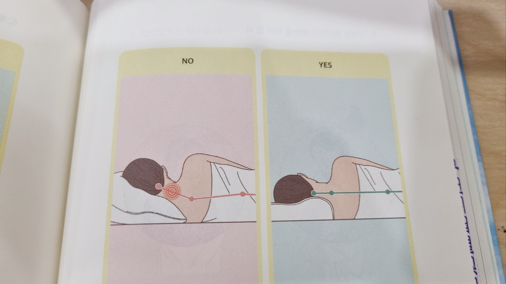 요약하면, 배게는 높지 않은 것을 사용하는 것이 좋으며, 생각보다 낮은 베개를 사용하기를 권한다.