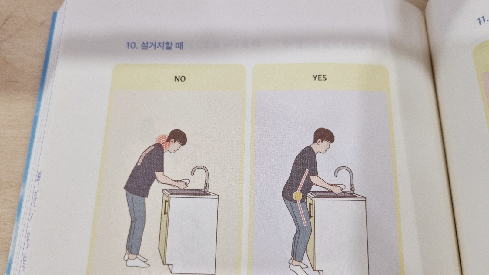 그래서 아무런 생각 없이 서서 설거지를 장시간 하면, 허리와 목에 통증이 생긴다.