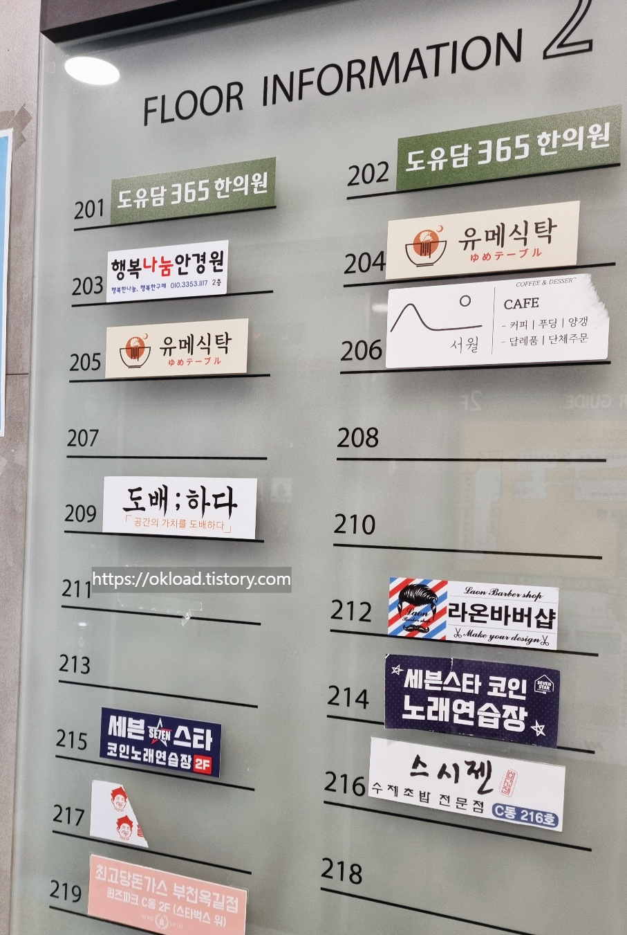 전체를 하나하나 확인하지는 못하였고, 층별 안내현황에서 2층에 표기된 업체만 정보 공유한다.