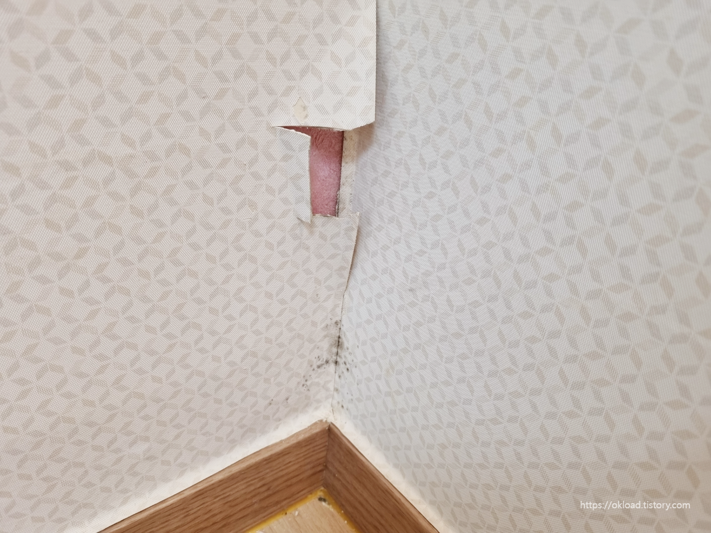 부분적으로 발생하는 곰팡이의 원인은 벽지를 다 벗겨보았을 때 파악할 수 있습니다.