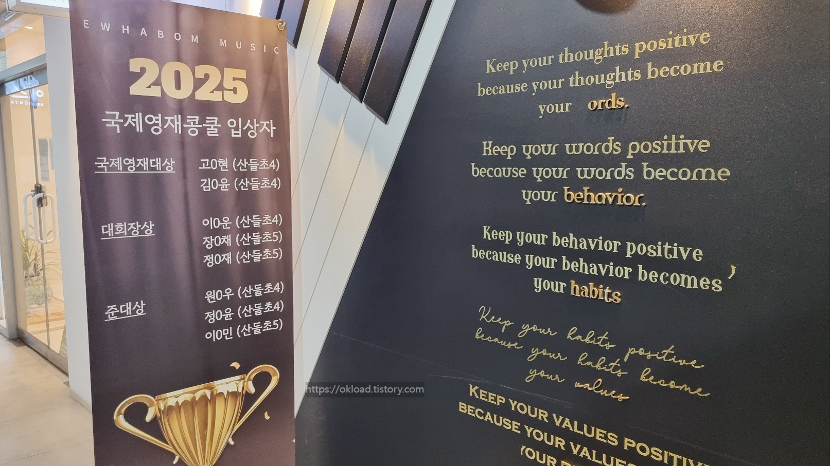 스타필드 옆 헤리움타운에 위치한 옥길 소리엘음악학원은 아이들의 음악적 감수성과 기본기를 소중히 여기는 교육 공간이다.