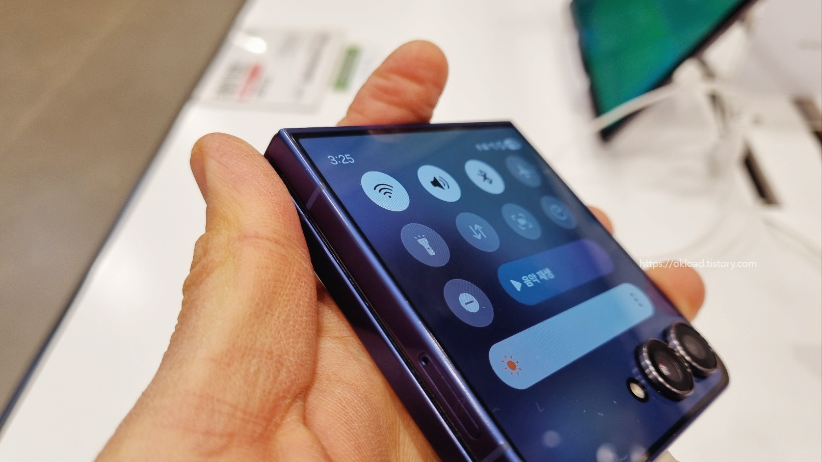 삼성전자 매장에서 직접 갤럭시 Z플립7을 만지고 조작해 보면서 사진도 함께 찍어보았습니다.
