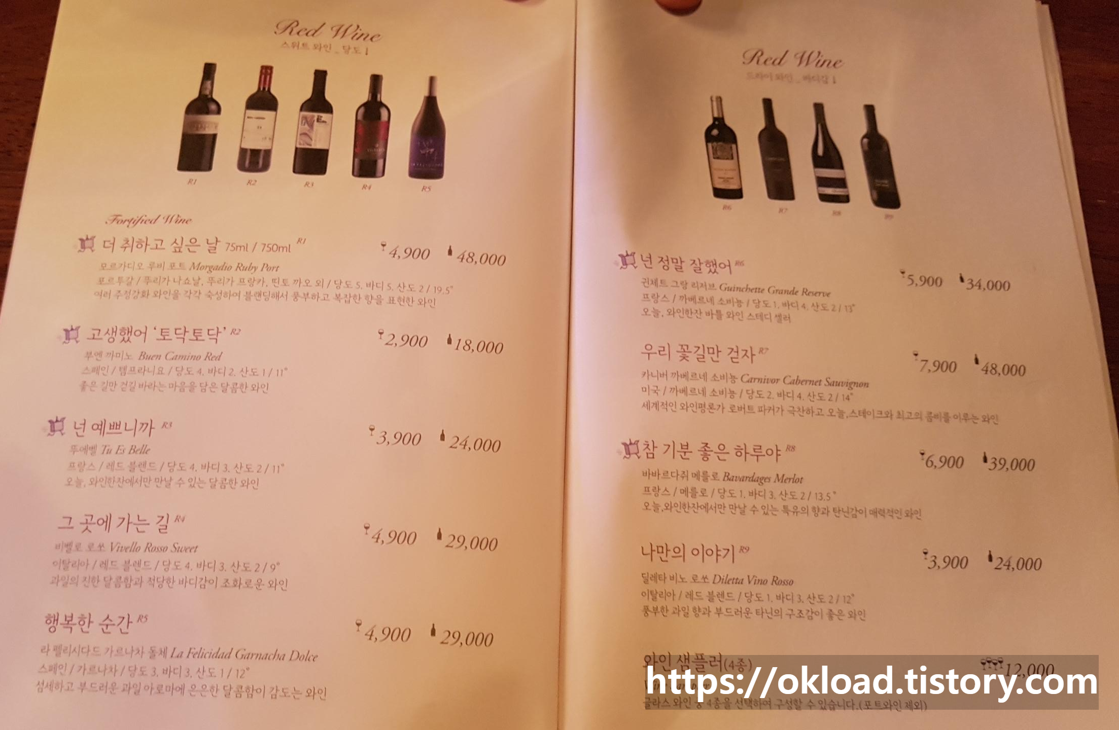 '오늘 와인 한잔' 메뉴 가격 (일부)