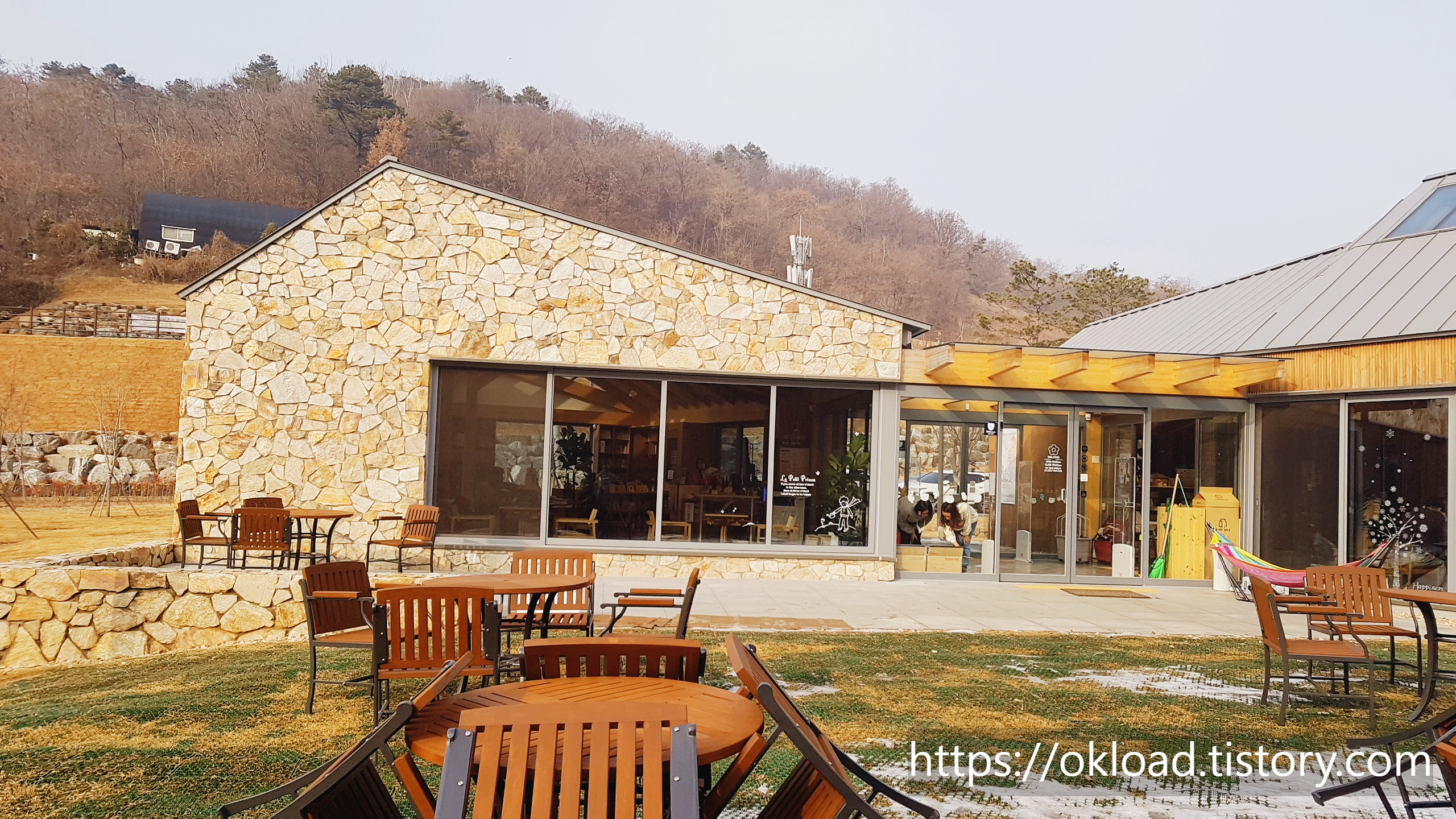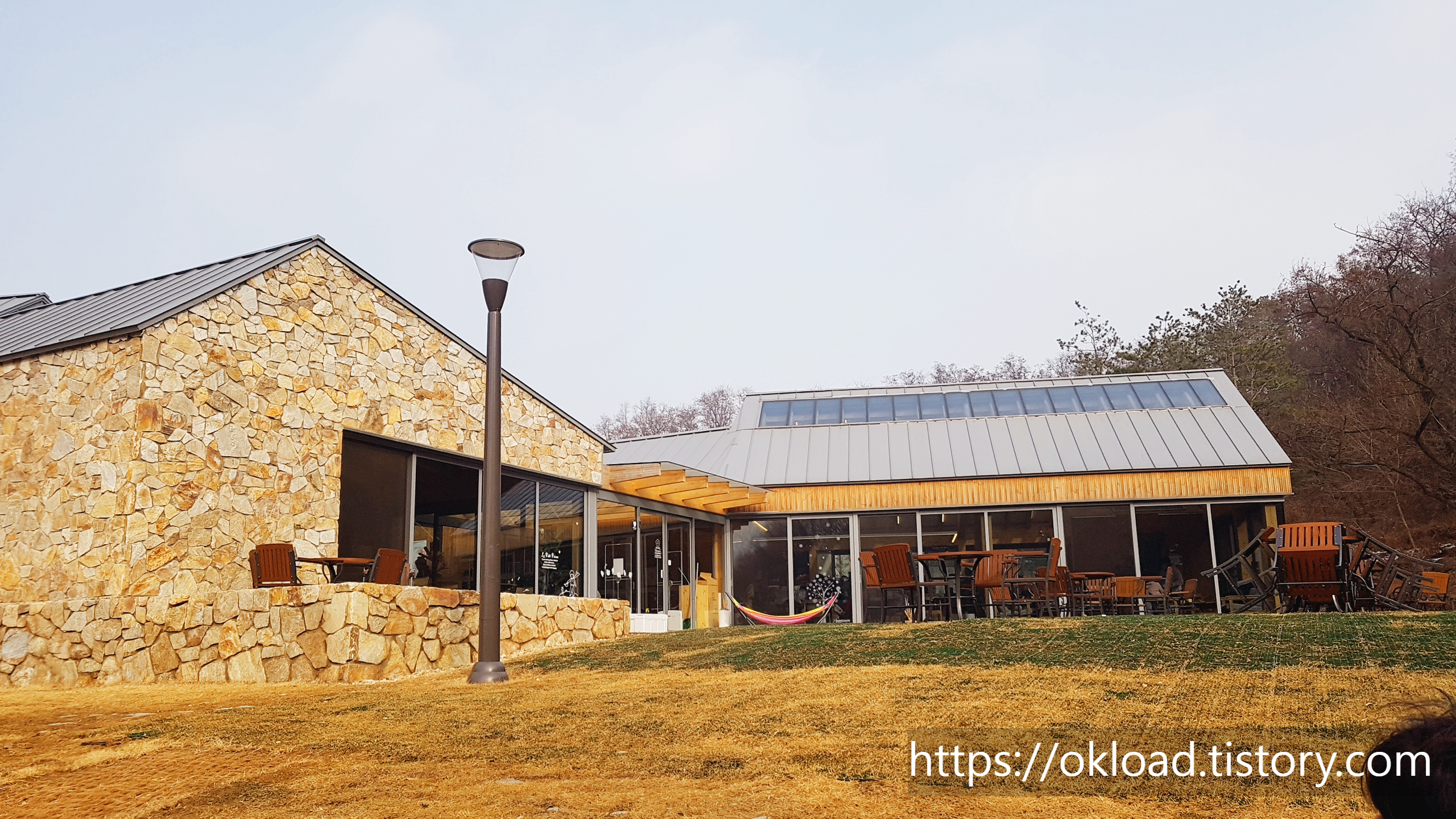 안타깝게도 천왕산책쉼터를 방문한 당일은 정기휴무 였다. 왼쪽으로 보이는 건물이 책쉼터(도서관)이며, 오른쪽으로 보이는 건물이 카페다.