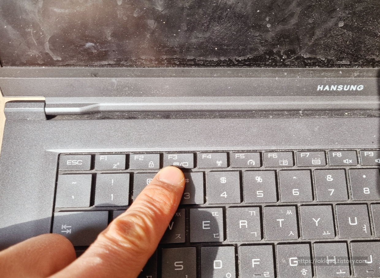 제 노트북은 F3버튼이 마우스패드 잠금설정 단축키입니다.