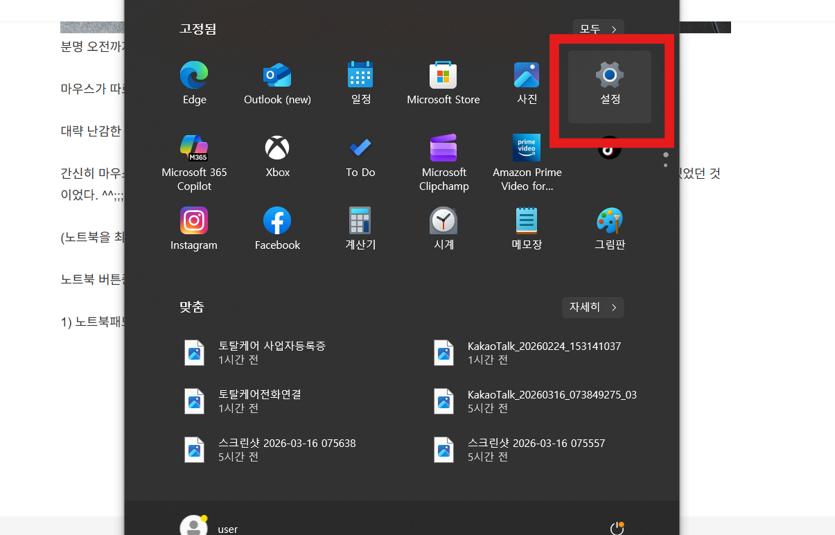 분명 오전까지만 하여도 정상적으로 잘 작동했었던 노트북 마우스패드 커서가 점심식사 후 갑자기 먹통이다.