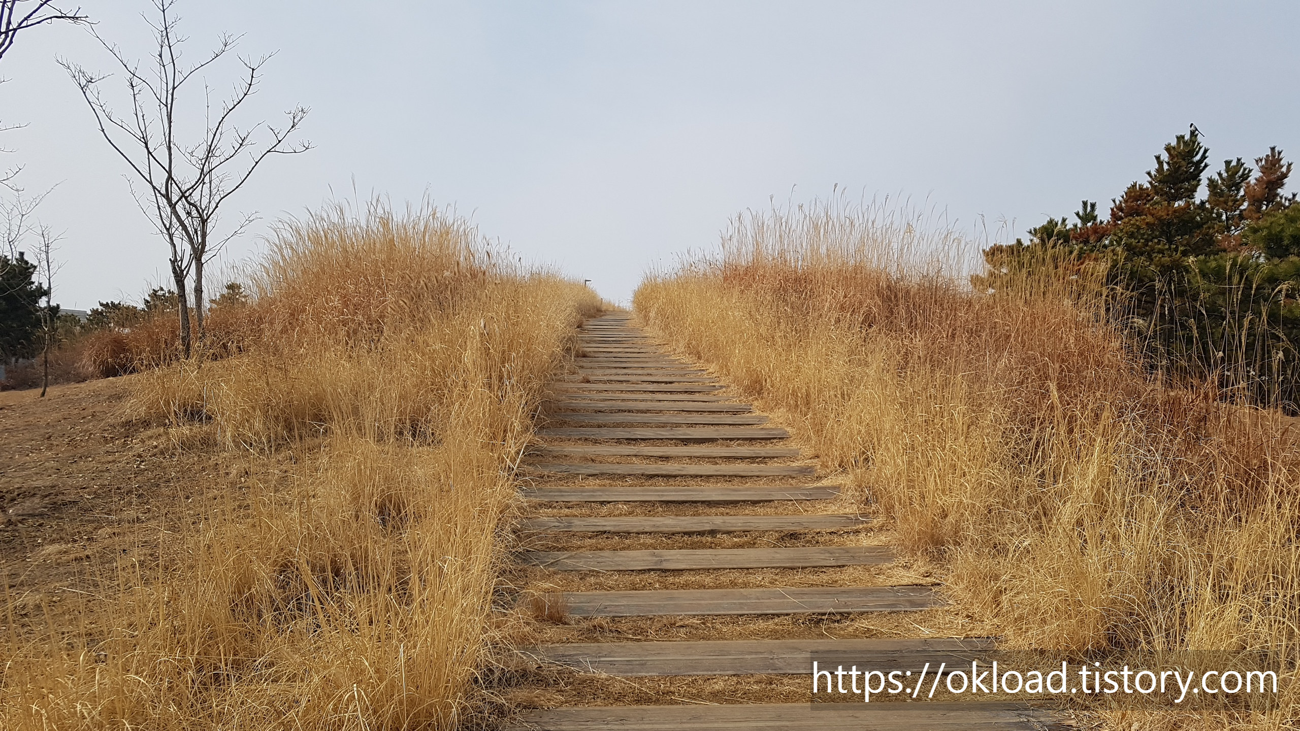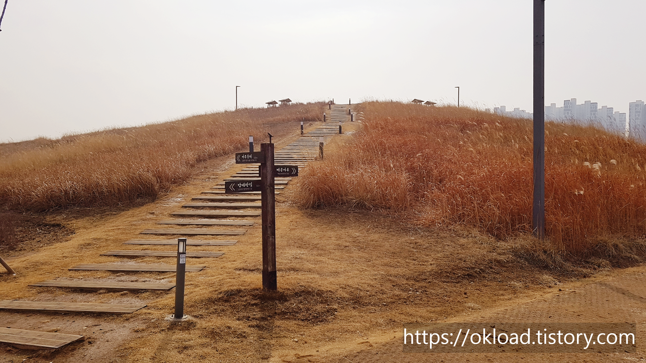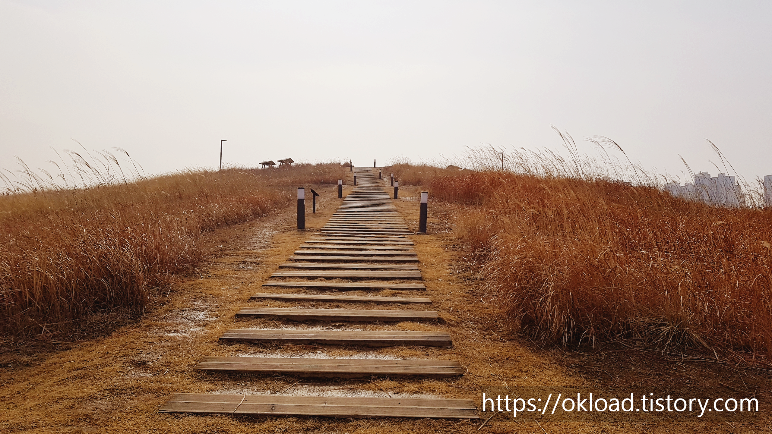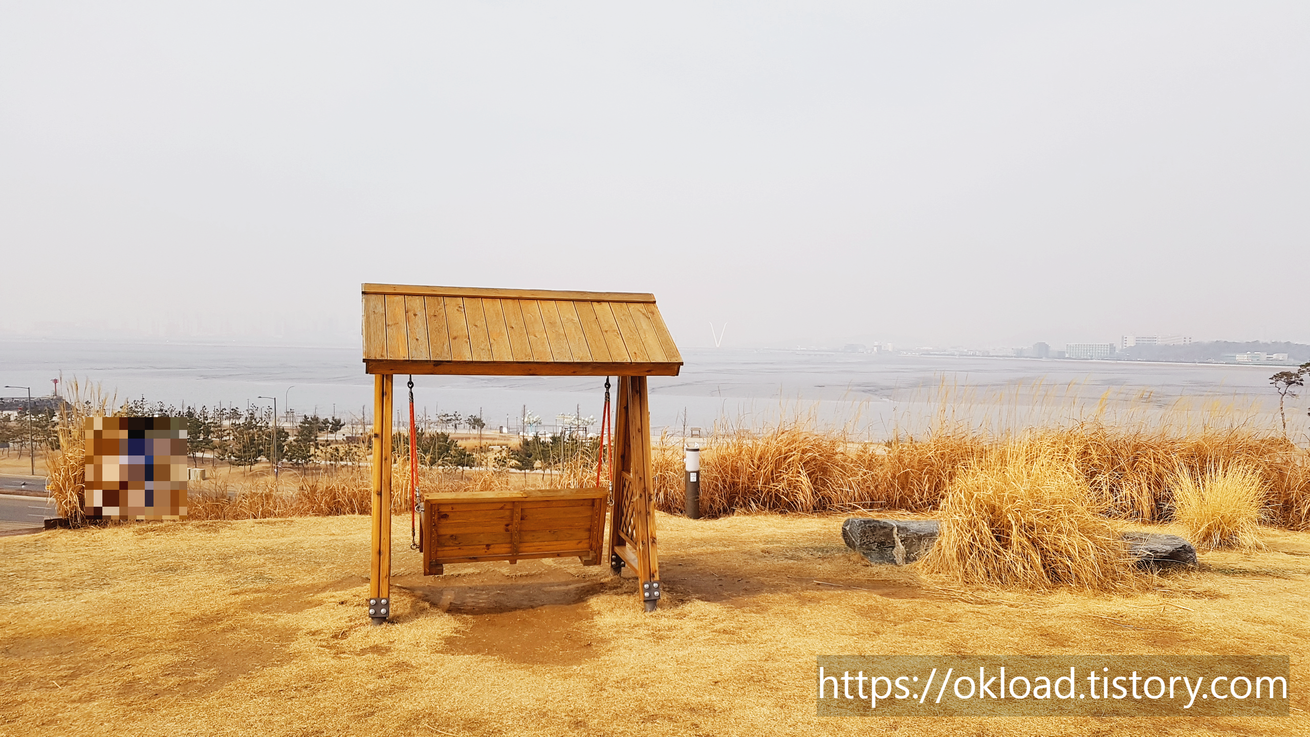 갈대들 뒤편으로, 육교가 보이고, 육교 뒤로는 바다와 송도까지도 보인다. 다소 흐린 날이라서 시야가 탁한 편이었는데, 화창한 날에는 바다와 하늘이 맞닿는 아름다운 수평선을 감상할 수도 있다.