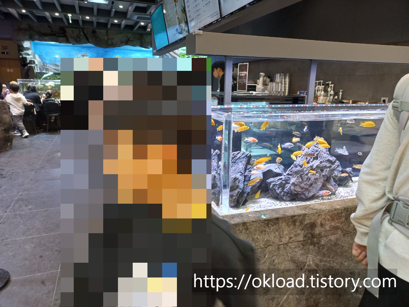 수족관 사이사이로 테이블과 의자가 놓여있었고, 아쿠아를 테마로 한 독특한 카페라는 것을 금세 알 수 있었다.